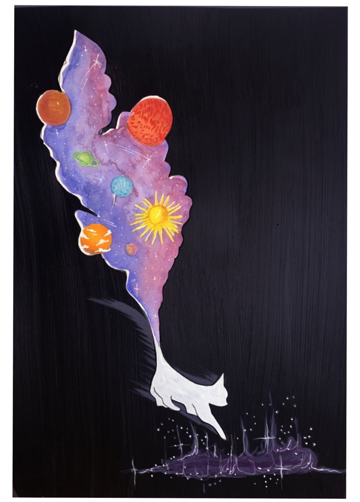 Initialement, cette carte était une illustration pour mon livre que j’écris depuis quelques années. Comme je ne vais pas finalement pas m’en servir dans mon futur roman, j’ai voulu partagé cette illustration avec vous. Un univers unique et galactique avec un chat pour leur plus grand fan.